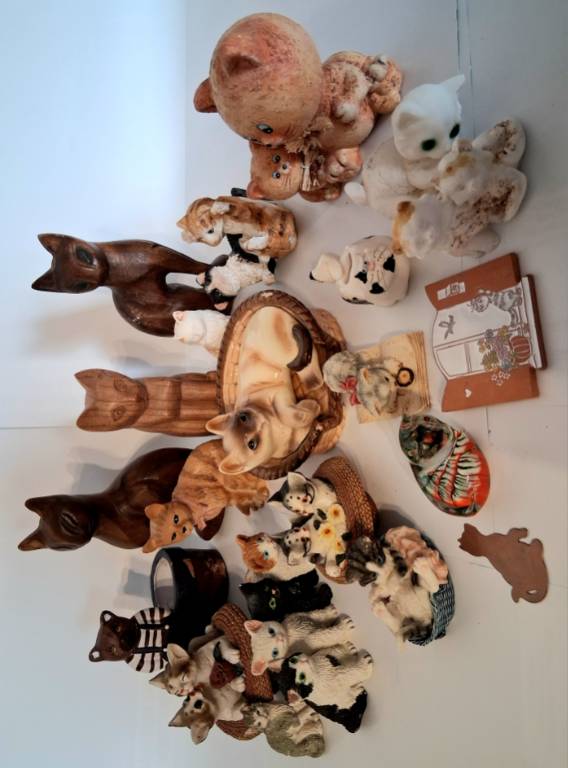 Collection de 470 chats avec 8 magnifiques livres sur ce félin. Faite par une personne passionnée Chats en bois , métal , verre , résine , porcelaine , plastique , terre cuite....